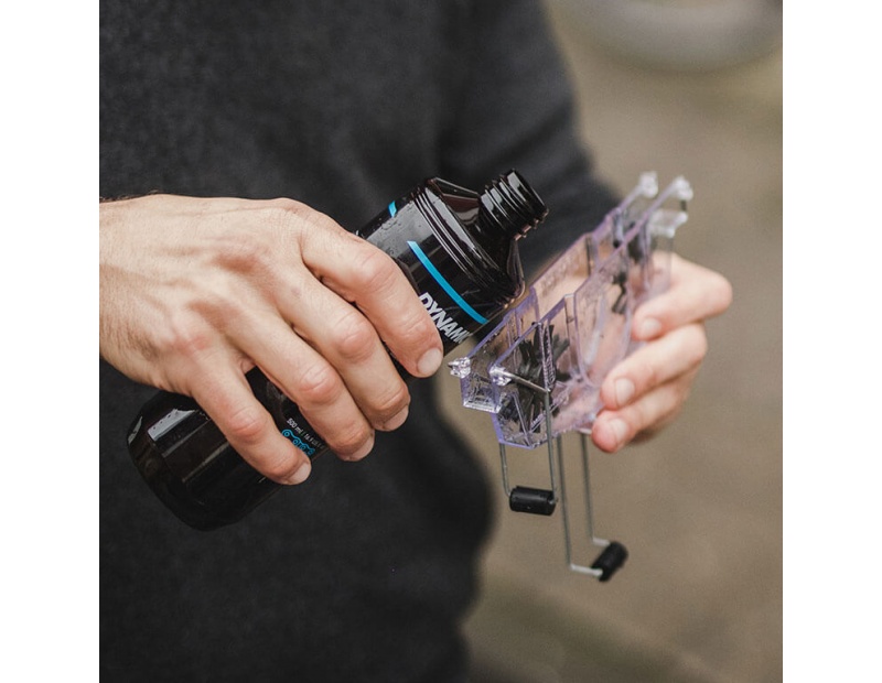 Уникалната формула на Dynamic Chain Cleaner се основава на два компонента. Почистващият препарат действа като обезмаслител, който разтваря масло, грес и други замърсители. В същото време, почистващият препарат за вериги оставя подготвителен филм върху трансмисията ви, който предотвратява изсъхването на металните части след почистването. Веригата ви ще изглежда като нова.