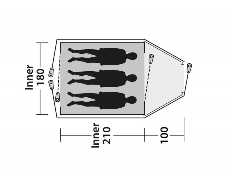 - Водоустойчивост: 3000 mm на тента (Outtex® 3000 Select полиестер) + 10 000 mm на пода (bathtub groundsheet)