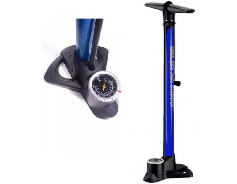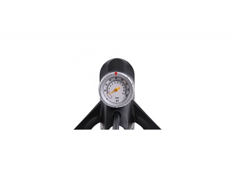 Код: 2220038000157Универсална крачна помпа с манометър, подходяща за шосейни и планински велосипеди.