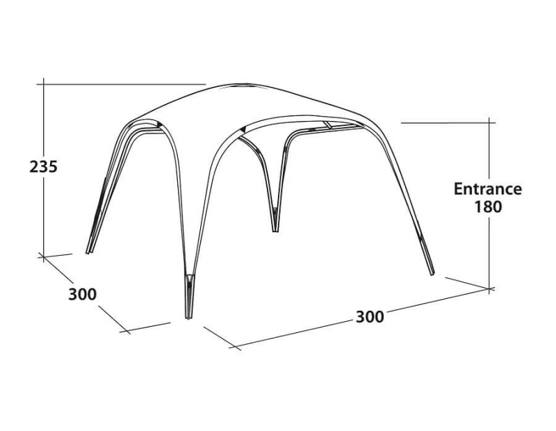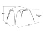 С размери приблизително 3 x 3 м и височина 2,35 м, този модел осигурява щедро пространство и комфортна височина на главата за цялото семейство или компания приятели. Благодарение на здравата конструкция и качествените материали, тястои стабилно самостоятелно, без нужда от привързване към палатка.